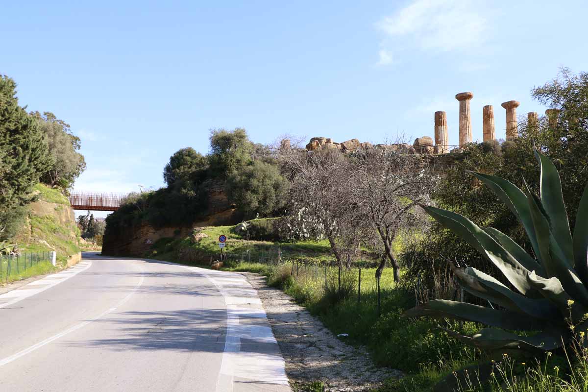 L’esperienza dell’utente nell’attraversamento si arricchisce di suggestioni: il ritmo degli elementi verticali, nel loro alternarsi, dialoga con il passo dell’andatura. Lo sguardo si apre sulla costa, sul paesaggio in movimento e sugli scorci del Tempio di Eracle.