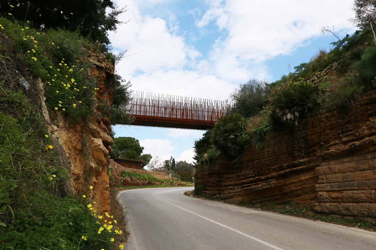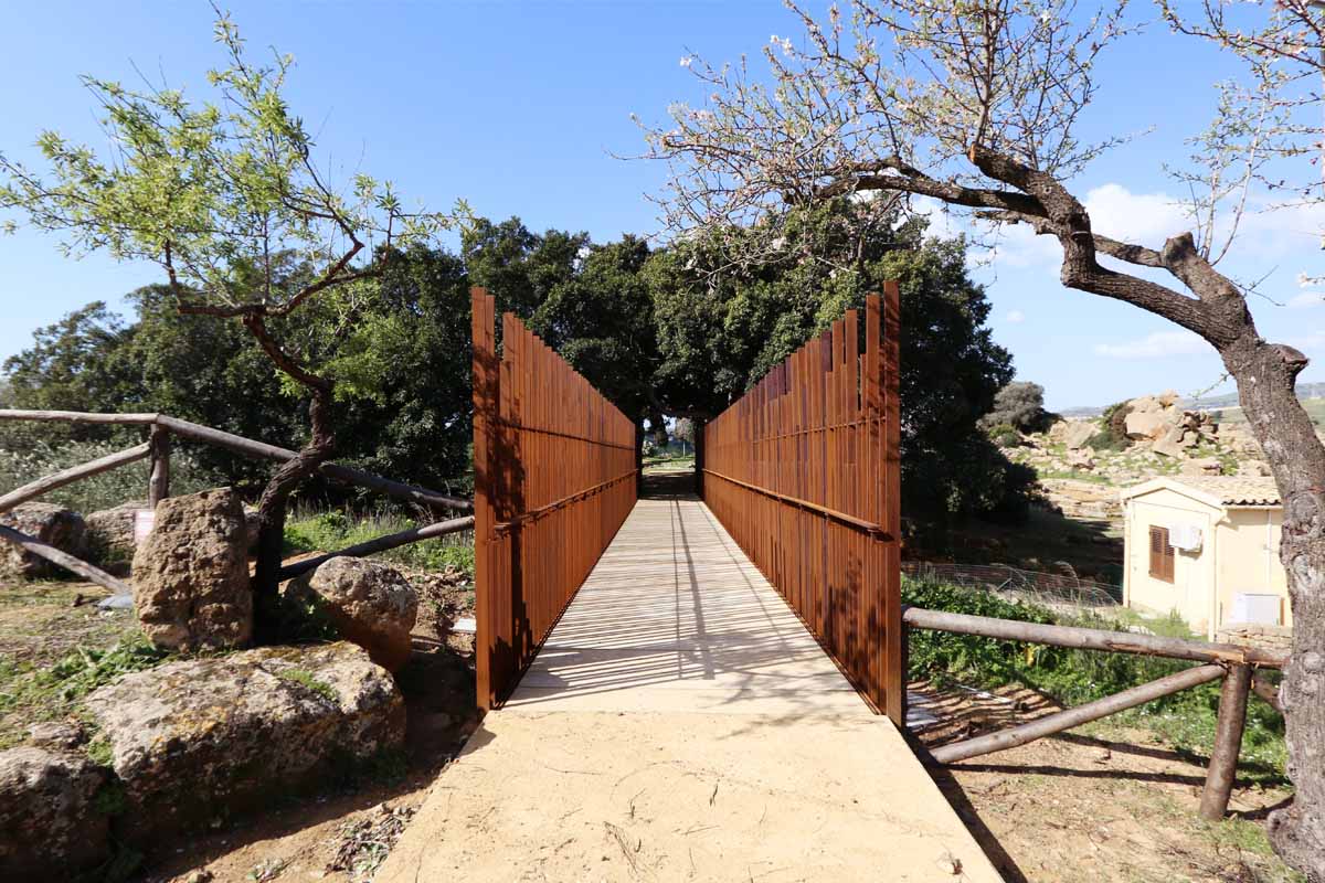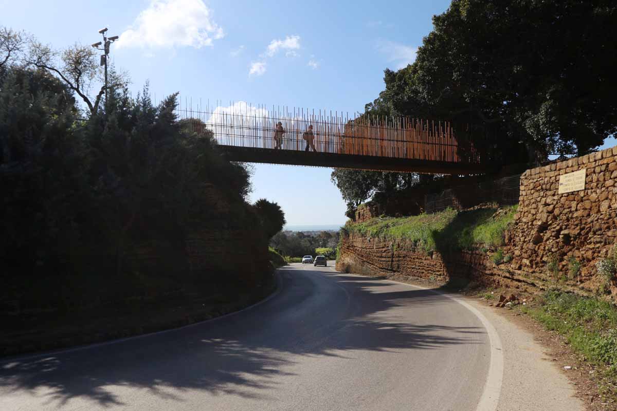 Concepita come un elemento scultoreo, la passerella si integra con il suggestivo contesto della Valle dei Templi di Agrigento. Il progetto nasce dal dialogo con le forme uniche del luogo, traendo ispirazione dalle peculiarità del paesaggio e dell’architettura greca.
