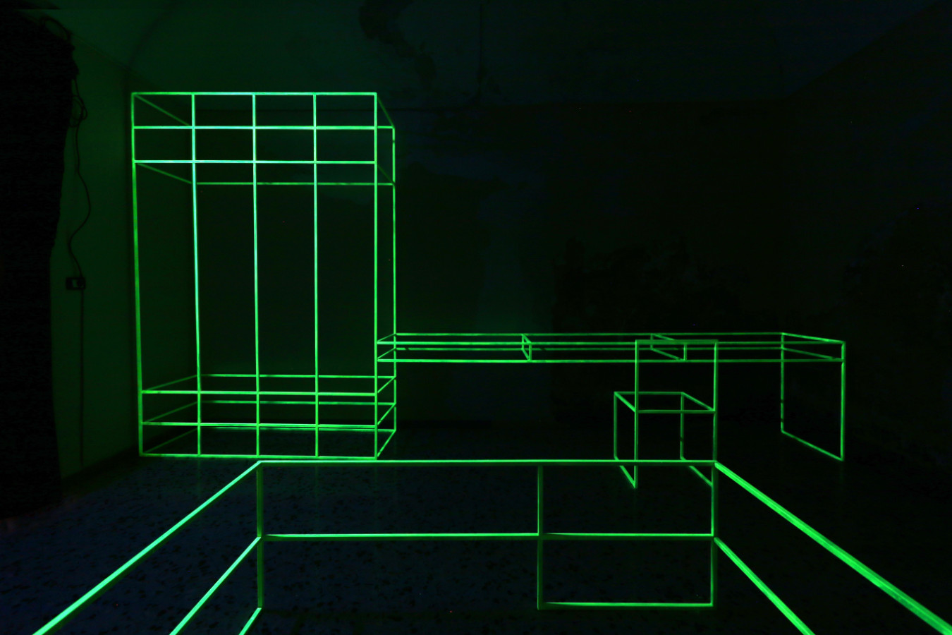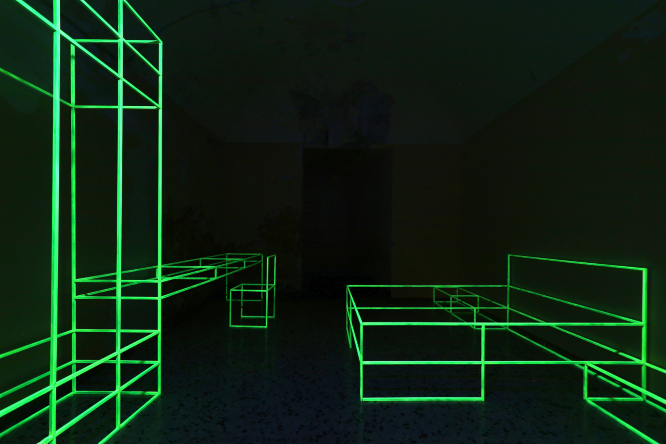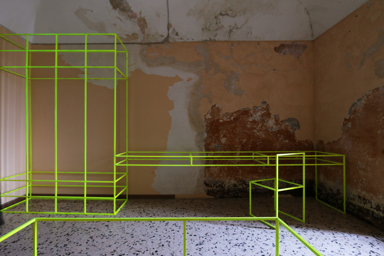 L’opera è stata concepita anche per essere esposta in spazi aperti, come nel 2017 al Vicolo Quid di Favara. La forza espressiva del Wireframe risulta ancora più sorprendente quando si accosta agli elementi naturali o agli ambienti esterni, dove le linee metalliche consentono di vedere la camera da letto come una visione immaginaria, un sogno a occhi aperti.